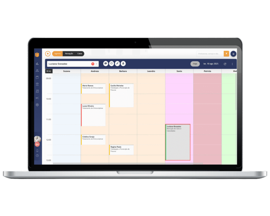 Com nossa plataforma, seus clientes podem agendar horários de podologia de qualquer lugar e a qualquer hora, aproveitando a conveniência da tecnologia para uma experiência sem complicações. Nosso sistema oferece praticidade permitindo que os clientes marquem consultas de forma rápida e fácil, enquanto você e os seus profissionais mantém sua agenda organizada e otimizada. Com essa solução, proporcionamos comodidade aos clientes, aumentando a satisfação e a fidelidade.