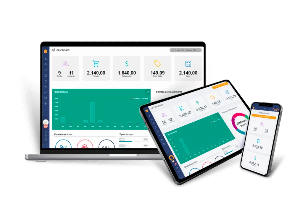 Um software de controle financeiro para salão de beleza simplifica o gerenciamento das finanças do seu negócio, permitindo registrar despesas, monitorar receitas, acompanhar pagamentos pendentes e gerar relatórios financeiros detalhados. Com essas funcionalidades, os gestores podem tomar decisões financeiras mais informadas e manter a saúde financeira do salão em dia.